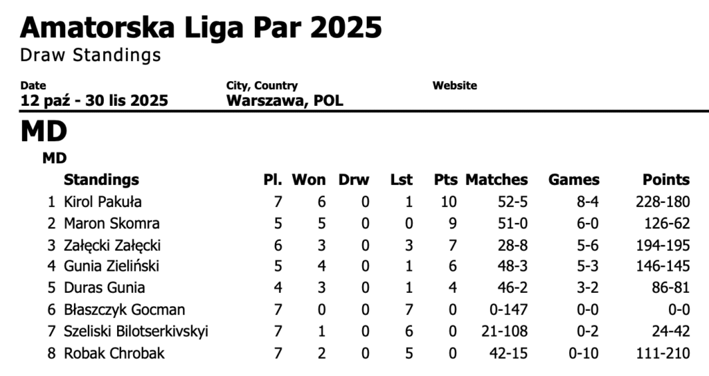 Dokładny plan gier będzie rozsyłany do uczestników e-mailem przed każdym terminem.