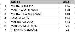 Zwycięzcy i końcowa tabela Edycji grudzień 2024 – marzec 2025: